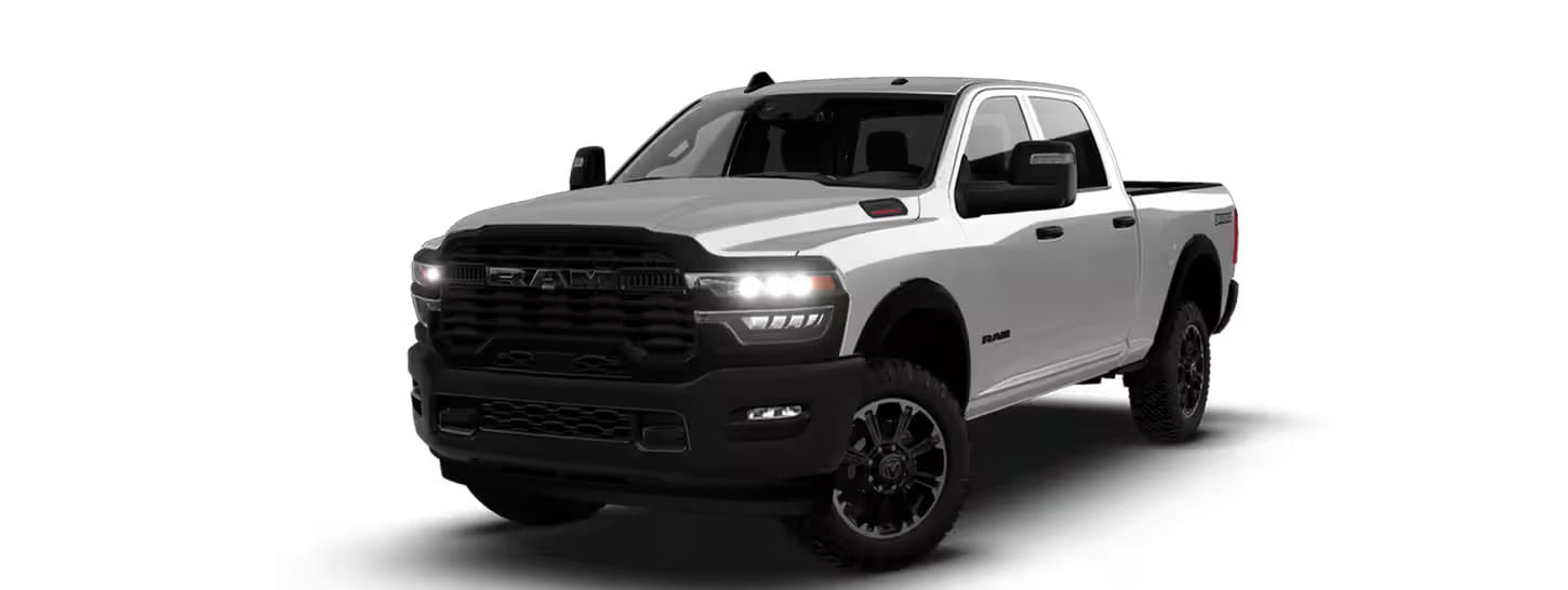 New for 2026, the Ram 2500 Warlock is a specialized trim that delivers factory off-road capability. It features an aggressive exterior design, a specialized suspension tune, off-road tires, and robust skid plates.
