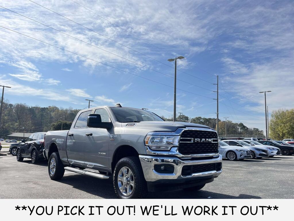 Backup Package, Bluetooth, Tow Package, Android Auto, Apple CarPlay, 2500 Big Horn, 4D Crew Cab, Cummins 6.7L I6 Turbodiesel, 6-Speed Automatic, 4WD, Billet Silver Metallic Clearcoat, Diesel Gray/Black Cloth, 2nd Row In Floor Storage Bins, 4G LTE Wi-Fi Hot Spot, 8.4" Touchscreen Display, Apple CarPlay, Auto Power-Folding Mirrors, Big Horn IP Badge, Black Exterior Mirrors, Bluetooth Handsfree Phone & Audio, Center Hub, Connectivity - US/Canada, Dual Glove Boxes, Exterior Mirrors Courtesy Lamps, Exterior Mirrors w/Heating Element, Exterior Mirrors w/Supplemental Signals, Foam Bottle Insert (Door Trim Panel), Footwell Courtesy Lamp, For Details, Visit DriveUconnect.com, For More Info, Call 800-643-2112, Forward & Reverse Utility Lights, Front Fog Lamps, Global Telematics Box Module (TBM), Glove Box Lamp, Google Android Auto, GPS Antenna Input, Integrated Center Stack Radio, Integrated Voice Command w/Bluetooth, Leather Wrapped Steering Wheel, Level 1 Equipment Group, Locking Lower Glove Box, Mirror Running Lights, Power Adjust Mirrors, Power Adjustable Convex Aux Mirrors, Power Heated Fold Telescope Mirrors, Power Telescoping Mirrors, Premium Cloth 40/20/40 Bench Seat, Quick Order Package 2HZ Big Horn, Radio: Uconnect 5 W w/8.4" Display (A62), Rear Dome w/On/Off Switch Lamp, Selectable Tire Fill Alert, SiriusXM Radio Service, SiriusXM Satellite Radio, Steering Wheel Mounted Audio Controls, Wheels: 18" x 8.0" Polished Aluminum. ------ Because we value you & your time, we use a Market Based Pricing System to provide you a great value from the very beginning. ** Call now (205) 759-4421 ** ***Price includes a $1000 trade assistance discount and $1,000 Financing discount.***